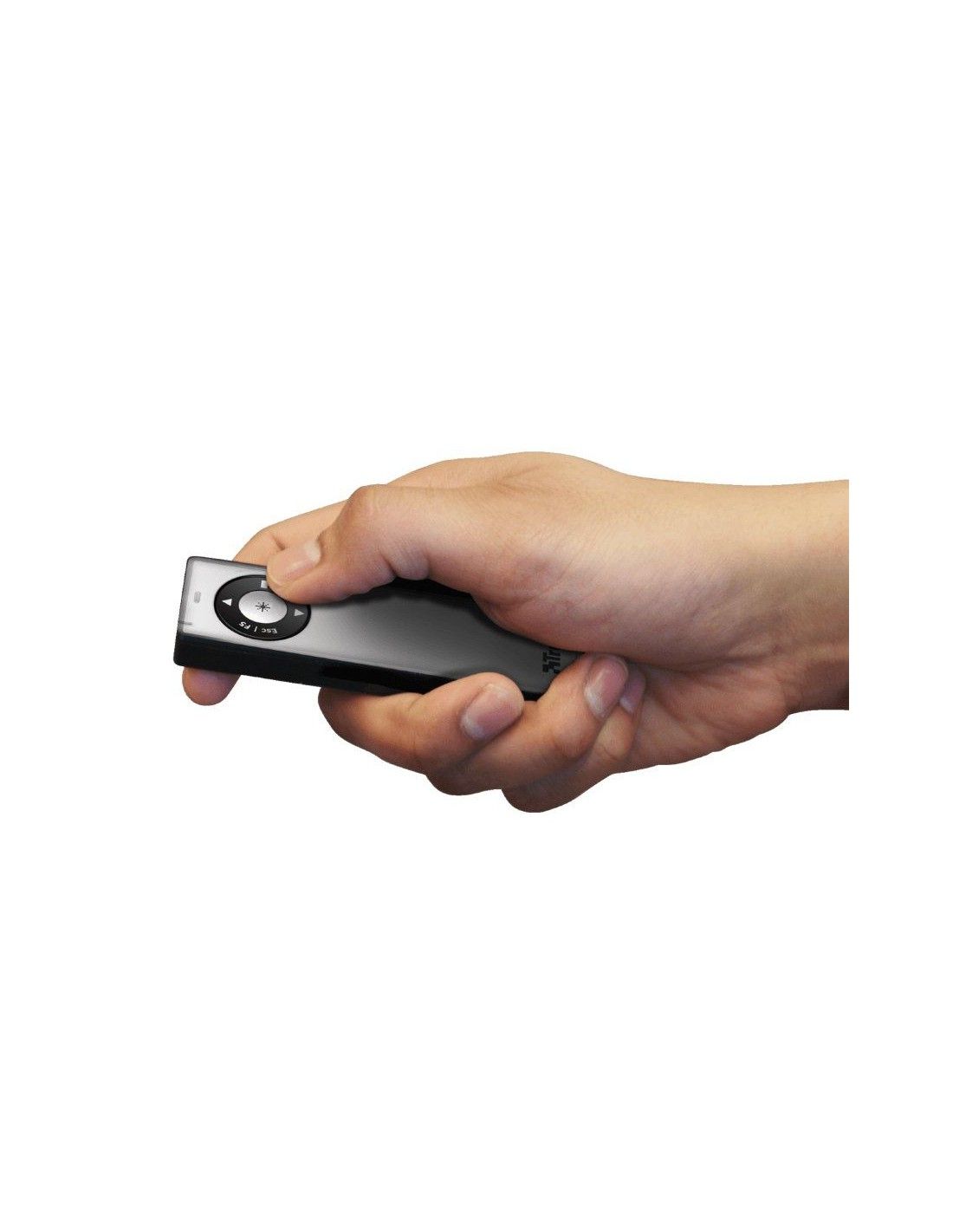 Presentador inalámbrico compacto con cómodo receptor USB almacenable en el dispositivo y puntero láser, ideal para manejar sus presentaciones de una manera muy profesional. 3 botones para el control de las presentaciones: Inicio/Fin de la presentación, Avance/Retroceso de página y pantalla negra. Fiable funcionamiento inalámbrico de 2,4 GHz para respuesta inmediata y sin interrupciones
